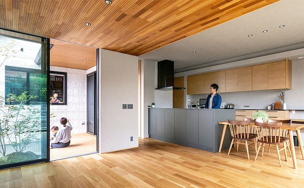 「LDKを高天井にしたことで自宅がより心地よい空間になり、自然と帰宅時間が早くなりました。家族と過ごす時間も増えています。」